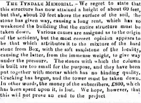 THE TYNDALE MONUMENT – CURIOUS PROPOSAL.